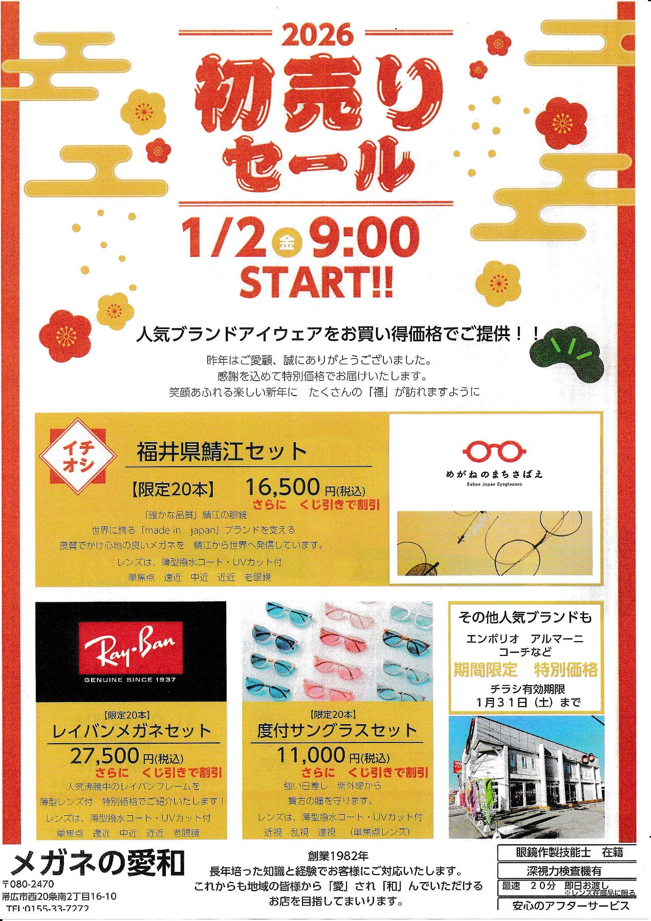 1月2日より当店では、大変お得にお買い物ができる『新春初売りセール』を開催いたします。